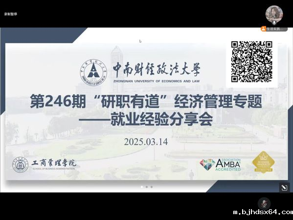 (通讯员:付珺祎)为帮助学院同学适应复杂多变的就业环境,树立合理清晰的就业观念,2025年3月14日晚19:30波胆app下载第246期“研职有道”经济管理专题——就业经验分享会活动以线上腾讯会议的形式顺利进行。本次活动邀请2020级营销管理专业李益智和汪家玲同学分享就业经验,由院研会生活实践中心毕良莹主持,学院各年级研究生同学踊跃参加。