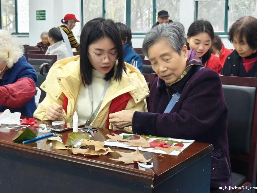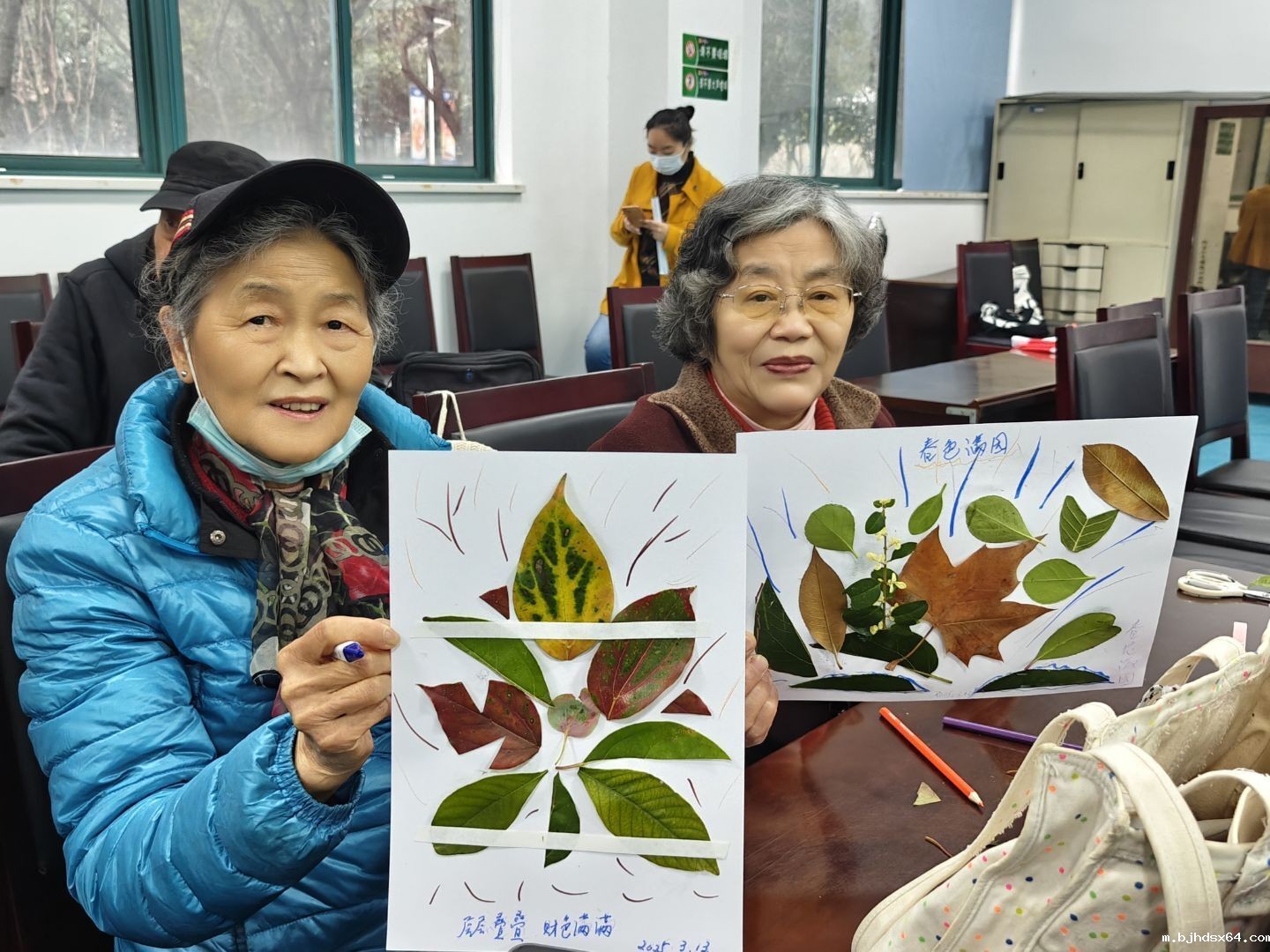 匠心独运成佳作,岁月凝香绘晚晴。在制作树叶画的过程中,志愿者与老人们亲切交流。老人们分享着自己年轻时的趣事,回忆着过往生活的点点滴滴,志愿者们则认真倾听。一位老人摩挲着手中的树叶,感慨地表示:“好久没有这么开心地做手工了,感觉自己又回到了年轻的时候。”志愿者们也回应称,从老人们身上学到了很多生活的智慧和经验。经过一番努力,各式各样精美的树叶画呈现在大家眼前。这些画作不仅展现了老人们和志愿者们的创意与才华,更传递出浓浓的社区温情。