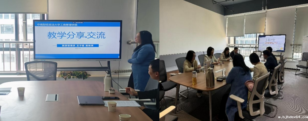 在交流分享环节,王子超老师和邹蓉老师分享了各自开设的特色课程,包括课程设计理念、教学方法创新及实践教学成果等内容。河北地质大学管理学院教师代表对我院的课程建设给予了高度评价,并表示希望未来能进一步加强合作,深入借鉴相关经验,共同推动旅游管理专业的高质量发展。