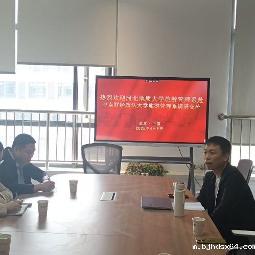 (通讯员刘兆杰)4月8日上午,河北地质大学管理学院旅游管理专业教研室主任杨丽花、专任教师和文征、徐晓红一行莅临我院旅游管理系。双方于文瀚楼北609会议室开展专业交流研讨活动。会上,双方围绕旅游管理专业建设、人才培养模式创新等议题展开了深入交流与探讨,旅游管理系主任张大鹏以及李明龙、周凌旭、王子超、邹蓉等专任教师代表参与研讨。
