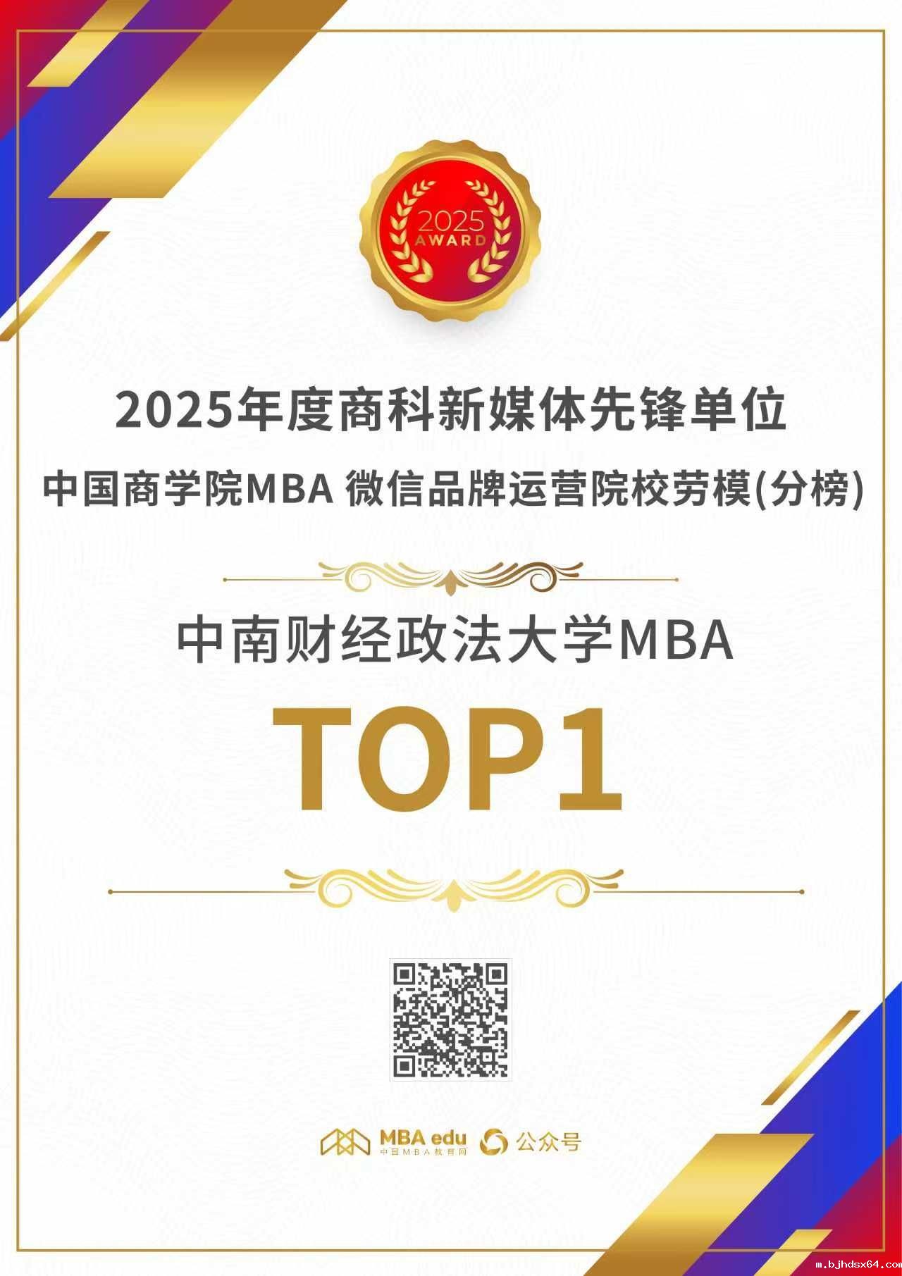 为表彰在商科教育领域坚守初心、开拓进取并发挥引领作用的典范,大会隆重揭晓了2025年度致敬榜单,旨在凝聚行业共识,树立前行标杆,以榜样力量激励更多教育者在新时代的征程中奋发有为。世界杯现场直播平台官网MBA项目荣获“2025年度卓越MBA品牌院校”奖;世预赛网络直播平台MBA公众号位列“2025年度商科新媒体先锋单位-中国商学院MBA微信品牌运营院校劳模分榜”第1名,荣获“2025年度商科新媒体先锋单位”奖。