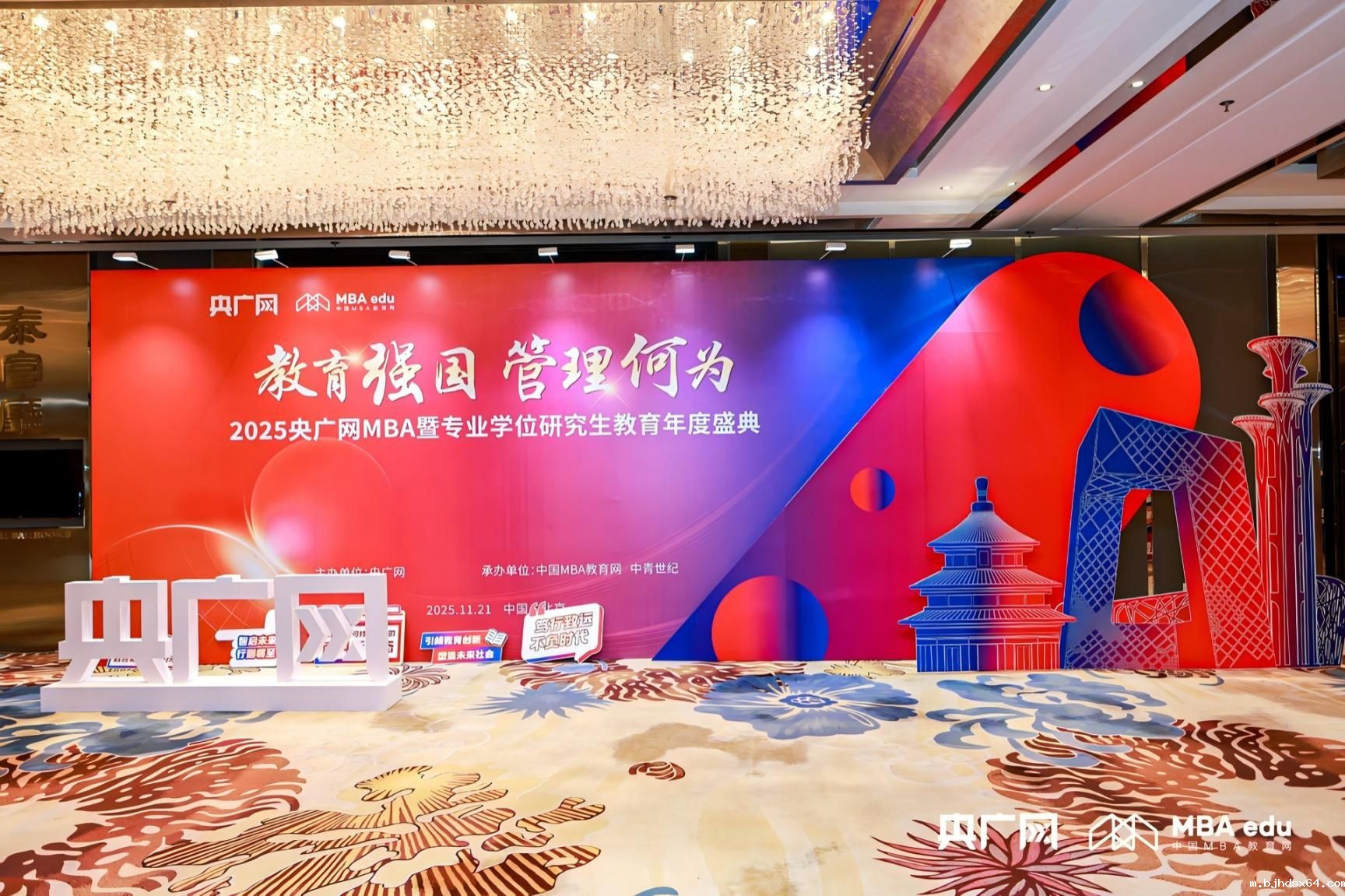 2025年11月21日,由央广网主办,中国MBA教育网、中青世纪承办的“2025央广网MBA暨专业学位研究生教育年度盛典”在北京隆重举办。本次盛典以“教育强国 管理何为”为主题,来自全国100多所商学院的200多位院长主任、中心老师、企业家代表等齐聚一堂,共商教育强国大计,共同书写管理教育事业的新篇章。