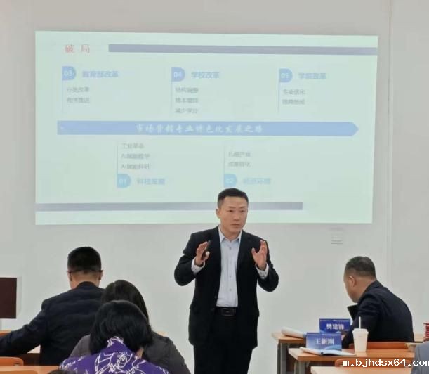 在分论坛“学科专业发展论坛暨专业负责人联席会专场”中,王新刚教授作题为《破局·扎根·重构:市场营销专业特色化发展之路》的主题报告。王教授围绕市场营销专业的特色化建设,从学科破局路径、专业根植优势以及未来重构方向等方面进行了系统阐述。他结合当前市场营销学科的发展趋势与高校专业建设实践,提出了推动专业特色化发展的思考与建议,为参会代表提供了有价值的经验借鉴,受到现场广泛关注。