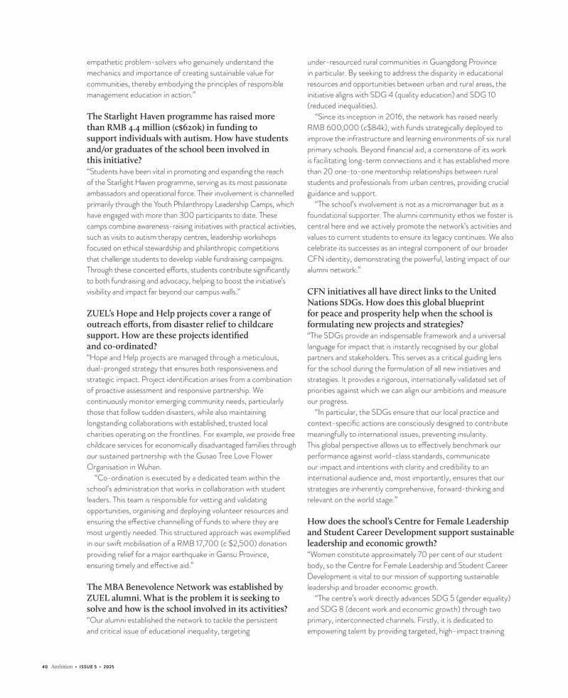 Recently, Professor Wu Haitao, Dean of the School of Business Administration and Director of the MBA Education Center of Zhongnan University of Economics and Law, was invited to an exclusive interview with AMBA Ambition, a leading journal in global business education. He shared the school’s innovative practices and strategic thinking in responsible management education in depth. Earlier, the school won the Gold Award of the 2025 AMBA&BGA Global Excellence in Business Education Awards for Best Corporate Social Responsibility and Sustainable Development Initiative with its Compassionate Futures Nexus. The dual recognition marks that Chinese universities’ cutting-edge exploration in responsible management education has gained world-class recognition.